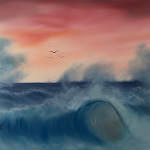 Original Art Of Bob Ross Ocean Sunset Painting Bob Ross Paintings Seascape Paintings Beginner Painting