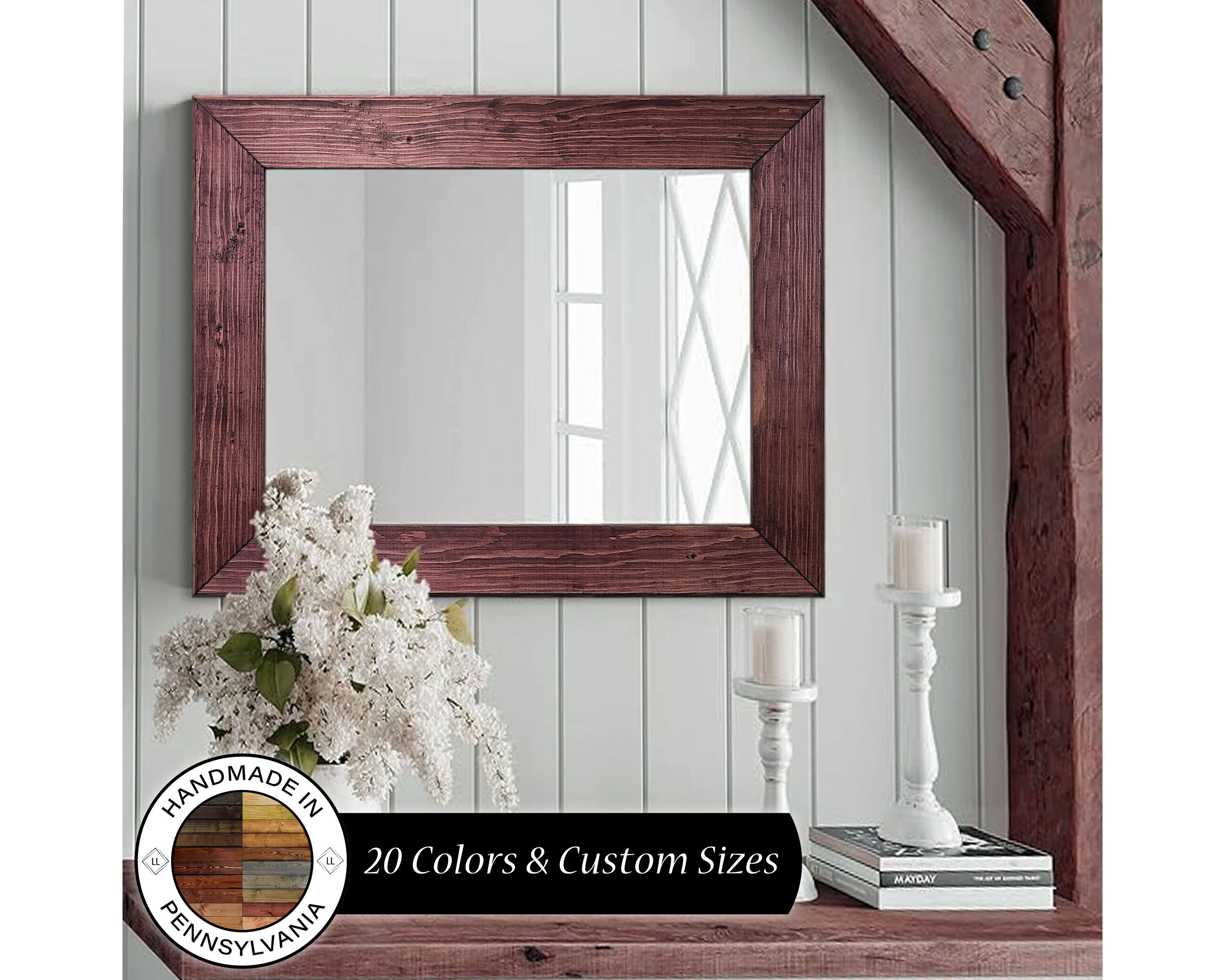 Amazon Com Natural Rustic Wood Framed Mirror Handmade In The Usa 20 Stain Colors Shown In Special Walnut Mirror Bathroom Vanity Large Bathroom Wall Mirror Rustic Bathroom Mirror Wooden Mirror Handmade Products